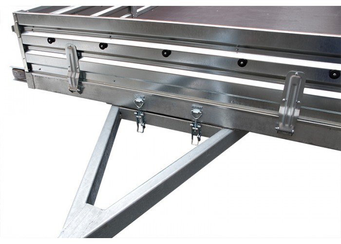 ● Оцинкованные стальные стойки бортов оборудованы петлями крепления груза (4 шт.).Благодаря дополнительным разделительным стойкам повышается жёсткость бортов и их сопротивление излому.