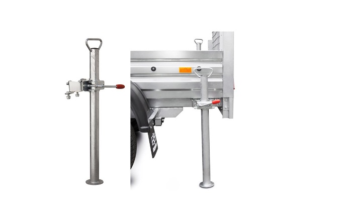 Оцинкованная опорная стойка (Ø48), в комплекте с элементами крепежа, для установки на раму прицепов общего назначения. Обеспечивает устойчивость прицепа во время погрузо-разгрузочных работ.